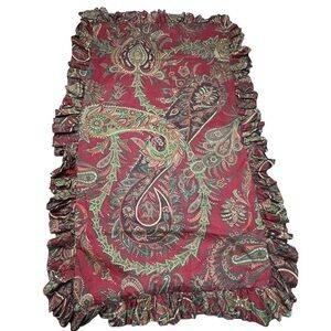 Pottery Barn Paisley Cotton King Ruffle Red Green Pillow Sham Multicolor **Lined