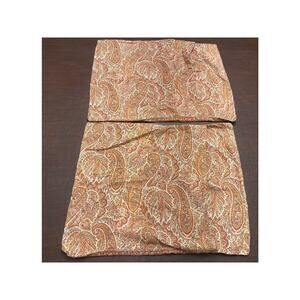 Beautiful set of 2 Pottery Barn pillow covers in a rich paisley pattern featuring warm tones of rust, gold, blue and ivory. Crafted from a soft and durable blend of 85% cotton and 15% linen. Envelope closure for easy insert and removal.