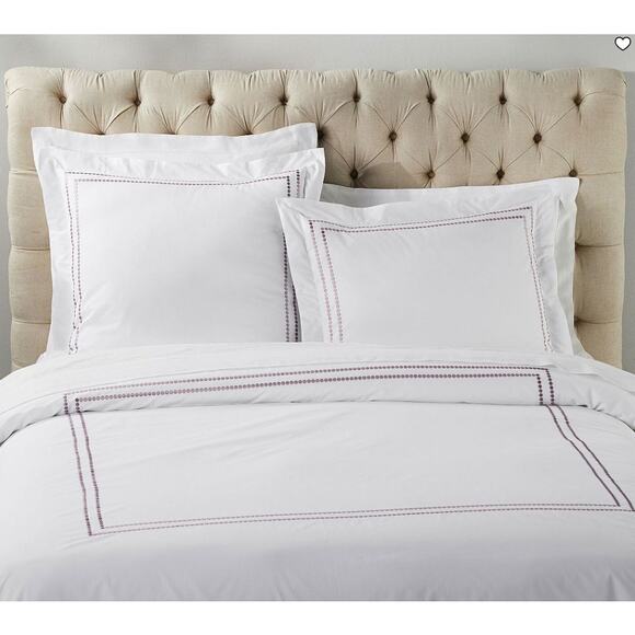 Pottery Barn Pearl Organic Percale Duvet Cover King Size Lavender Purple Dots