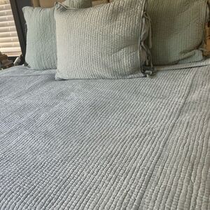 The Pottery Barn Pickstitch Handcrafted Cotton King Quilt in Loden Green is a luxurious and elegant addition to any bedroom. Made from 100% cotton with a quilted design, this handcrafted quilt exudes quality and craftsmanship. The pickstitch pattern adds a unique touch to the traditional design, making it a standout piece in any room. Perfect for adding a cozy and stylish element to your bedroom decor, this quilt is sure to bring a touch of comfort and sophistication to your space.
