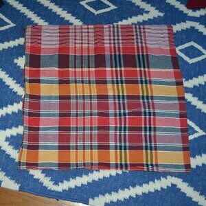 Very good condition Pottery Barn Quinn Madras 24"x24" pillow cover. Made of 100% Cotton. Beautiful condition, no flaws. Features a 100% Cotton lining and zipper enclosure. Think summer, beach, cabin!