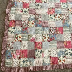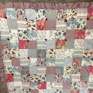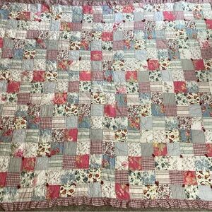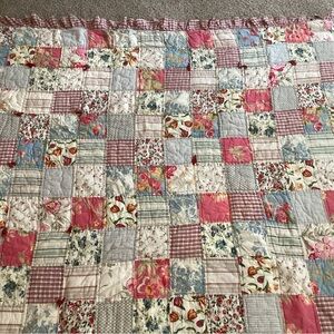 Pottery Barn Red Floral Kelcey Quilt Patchwork Reversible Twin 74”x84”