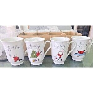 Get into the festive spirit with this Pottery Barn SANTA BABY Mug Set. The set includes eight porcelain mugs, each featuring a unique design of Santa Claus. The glossy finish and contemporary style of these mugs make them perfect for your Christmas dinner party or as a gift for a loved one. The mugs have a diameter of 3 1/2 inches and a height of 4 1/2 inches. They are hand wash only and come with features such as being footed and not microwave safe. The production technique is pottery and the backstamp is printed. This eight-piece set is perfect for America-originated collectors and is a must-have for your Christmas-themed decor.
