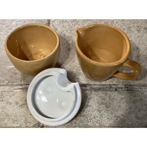 Pottery Barn Sausalito Amber Creamer & Sugar Bowl With Lid ~ No Spoon