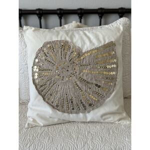 Pottery Barn Seashell Sequence Beaded Pillow Cover 20x20 Nautical Beach Seashore