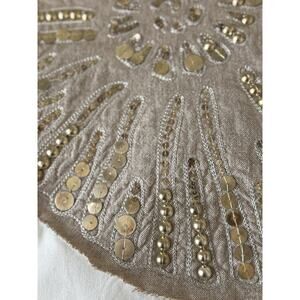 The Pottery Barn Seashell Sequence Beaded Pillow Cover is a stylish addition to any room, featuring a nautical theme with a shell pattern and beaded, sequence and embroidered detailing. Made from 100% cotton in a beige color, this square pillow cover measures 20 x 20 inches and has a button closure. Perfect for adding a touch of casual elegance to your decor, this embroidered piece is sure to enhance the coastal charm of your space. Made in India, this pillow cover is perfect for spot cleaning and adds a unique and eye-catching element to your home.