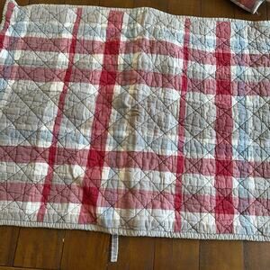 Pottery Barn Set of 2 Red Gray Quilted Plaid Cotton Pillow Shams Standard