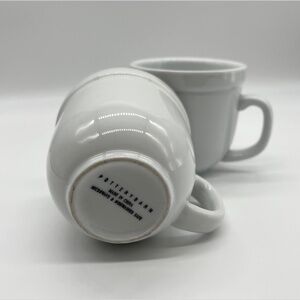 Pottery Barn Set of 2 Suppertime White Coffee Mugs Cups 3 7/8” Wide Rim Bistro - (D9)