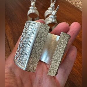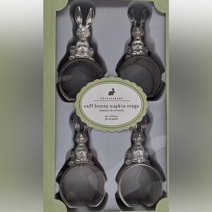 Darling set of Pottery Barn napkins rings. Silver cuff bunny design. These have a nice weight to them. I used them once. I no longer have the box. They are just adorable!