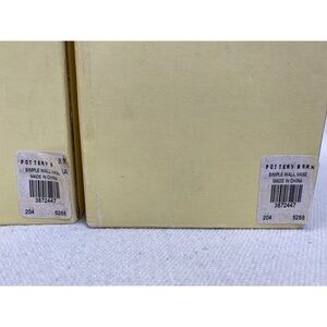 Pair of pottery barn simple wall vases - they are hand made so there is a slight size difference - one nail is missing, both appear never to have been used- with original boxes