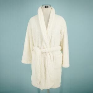 Pottery Barn Size Small S Ivory Sherpa Teddy Belted Tunic Length Knit Bath Robe
