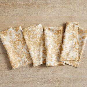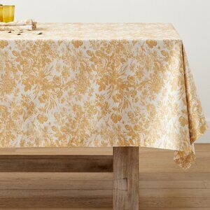 Pottery Barn Sorrel Toile Organic Cotton Tablecloth + 8 Dinner Napkins Yellow