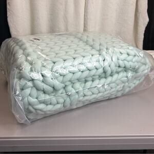 Pottery Barn Super Chunky Knit Throw Blanket Mint Green Seaglass NEW Soft