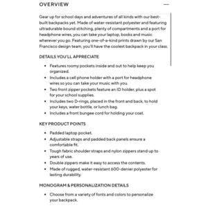Gear up for school days and adventures of all kinds with our best-built backpacks yet. Made of water-resistant polyester and featuring ultradurable bound stitching, plenty of compartments and a port for headphone wires, you can take your laptop, books and music wherever you go. Featuring one-of-a-kind prints drawn by our San Francisco design team, you'll have the coolest backpack in your class