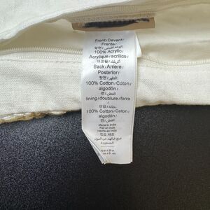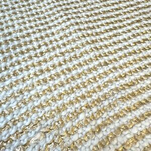 Brand new with original tag. This is a sold out item on Pottery Barn Teen. It is knit by hand from acrylic fibers and reverses to solid white cotton. The pillow cover has gold-foil striations that add shimmer to your decor.