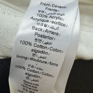 Hand knitted of 100% acrylic. Reverses to 100% cotton