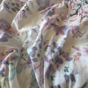 This is a new, without tag set. The duvet cover came out of it's original packaging and couldn't be returned to the shelf and the sham is an "open box" item. Both have been inspected and are in unused condition. The LoveShackFancy Damask Ruffle Duvet Cover in Lavender is no longer available, and a best-selling favorite. It is an adorned botanical beauty for your sleeping space. Crafted from durable, lightweight cotton percale for year-round comfort. The floral pattern has an ivory base, with a pretty lavender damask print and ruffled edges. The matching sham is quilted and smocked on the front, for additional dimension. The duvet is twin sized and the sham is standard. Designed exclusively for Pottery Barn Teen by lifestyle brand LoveShackFancy.