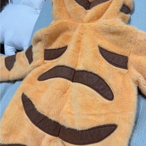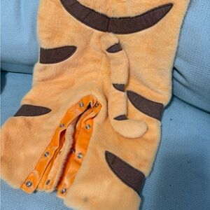 Adorable orange tiger costume with brown stripes and a yellow belly. Perfect for dress-up or Halloween. Great condition. Worn once