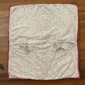 Two, white, green, red and pink, RIA VOILE, 100% cotton, quilted, euro pillow sham by Potter Barn. Finished size is 26x26 inches. The front size is a floral print on a gauze cotton. The backside is a red, floral print. There are two dark areas that looks more like something is showing through rather than a stain. Small red color bleed area near edge and another one near a flower in the center design. One very small black dot. On the backside one pillow has more color fade than the other. None of the issues are very noticeable when in use only when you are looking at it close up. See photos. You will need to provide your own pillow insert. Machine washable. In good pre-owned condition with some signs of wear from normal use.