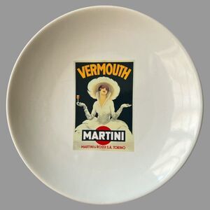 Set of 4 Pottery Barn ceramic luncheon/dessert plates featuring classic vintage Italian cocktail poster designs. Each 8 plate showcases a different bold, colorful advertisement Mandarinetta Isolabella, Vermouth Melchior, Florio S.O.M, and Vermouth Martini. A great collectible set that adds charm to any bar cart, kitchen, or dining table. Ideal for entertaining, display, staging, or gifting.