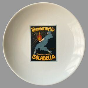 Set of 4 Pottery Barn ceramic luncheon/dessert plates featuring classic vintage Italian cocktail poster designs. Each 8 plate showcases a different bold, colorful advertisement Mandarinetta Isolabella, Vermouth Melchior, Florio S.O.M, and Vermouth Martini. A great collectible set that adds charm to any bar cart, kitchen, or dining table. Ideal for entertaining, display, staging, or gifting.