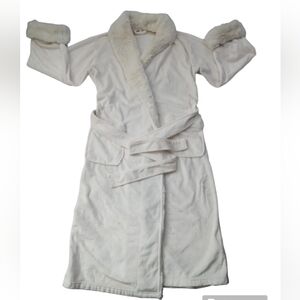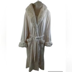 Pottery Barn White Plush Shawl Collar Robe with Faux Fur Trim Size Medium