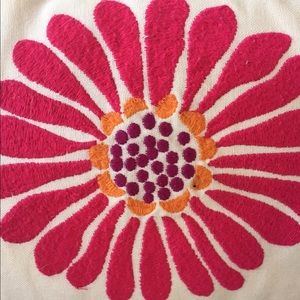 Embroidered pottery barn teen floral pillow. I absolutely love this pillow but unfortunately I'm moving into dorms next year so I have to down size. This pillow goes great with any color scheme, and IS machine washable!