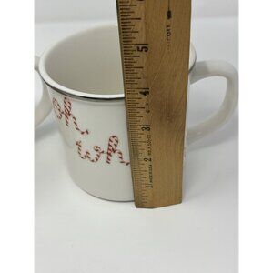 Pottery Barn lot of 2 Peppermint Sentiments HO HO HO Christmas Mugs Holiday
