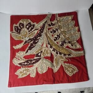 Pottery Barn set of 2 well made floral applica throw pillow red fall theme cover