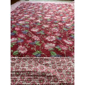 Pottery Barn teen Handcrafted Quilt Block Print vintage pink floral girls cotton