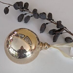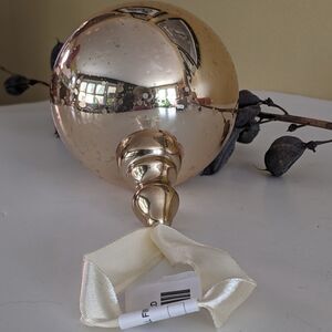 Pottery Barn 4" Gold Finial Blown Glass Christmas Ornament Satin Ribbon