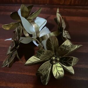 Pottery Born Set Of 4 Gold Leaf Poinsettia Floral Festive Holiday Napkin Rings
