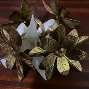 Pottery Born Set Of 4 Gold Leaf Poinsettia Floral Festive Holiday Napkin Rings