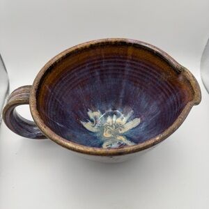 Pottery Bowl w/Handle and Pouring Spout PurpleBlue Glaze Art Ceramic Handmade