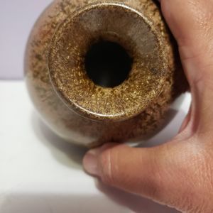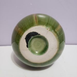 Pottery Bud Vase Green Tan Drip Glaze 5"×3.5"