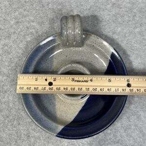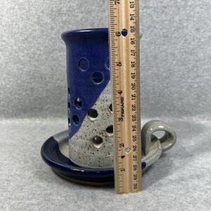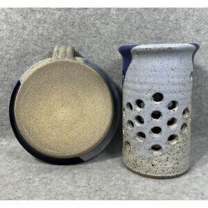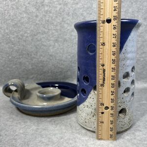 Pottery Candlestick Holder With Luminary Votive Shade Stoneware Blue Glaze 2 Pc
