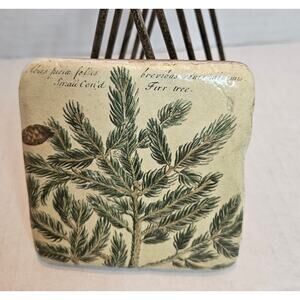 Four Pottery Coasters in Metal Stand Williamsburg Christmas Remembered Collections 2015. Use for all seasons. Cork backed. 3.5" x 3.5" Stand 6" tall. Rustic design. Each Sprig is identified in Latin: Ilex Aquifolium is English Holly or Oregan Grape ( see pic for detail). Great pre-owned condition: no chips, marks or stains. See pic for cork backing minor issue.