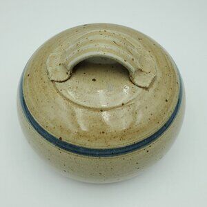 Pottery Covered Cheese Dish Butter Dish Lidded Tan Blue Band Pottery Dish