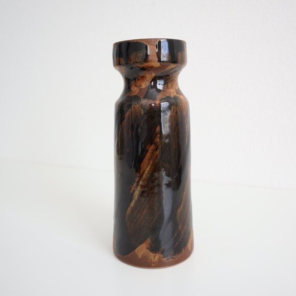 Brown with dark brown/black and tan brushstroke glaze