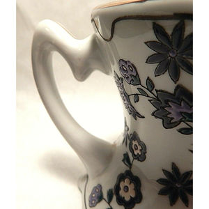 Pottery Shaving Scuttle Mug White with Blue Flowers Unbranded