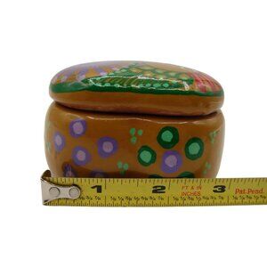 Pottery Terracotta Heart Shaped Trinket Keepsake Box Handpainted Bird Taxco Mexi