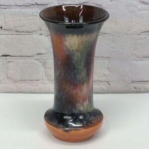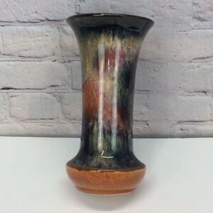 Pottery Vase Drip Glaze Trumpet Studio Art Multicolored Stamped Not Signed