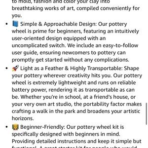 All-Inclusive Pottery Kit: Immerse yourself into the artistic world of pottery with our extensive set. You will receive 6 sculpting devices, 2 artist's brushes, 12 vibrant acrylic paints, plus a practical cutting wire, and more. This kit delivers all the essentials required to mold, fashion and color your clay into breathtaking works of art, compiled conveniently for you.