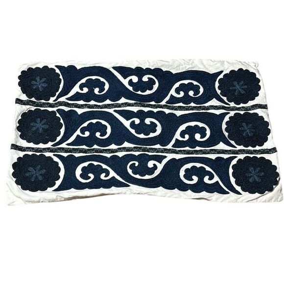 Pottery barn decorative pillow case embroidered abstract waves clouds floral