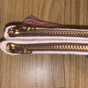 Pouch with double zip. Bottoms half way to close.