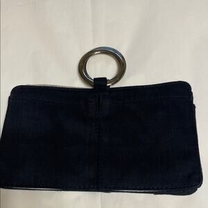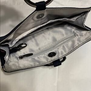 Pouchee - Black Purse 7.5” Organizer w/ Metal Pull Hoops Pink Kangaroo Logo NWOT