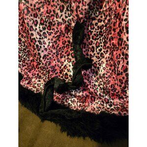Dreamgirl pouncer costume. Pink and black hooded cat costume with furry edging and attached tail and fluffy under skirt. Womens 1X