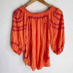 Poupette S. Barth Embroidered Blouse Orange Pink Sz Medium