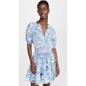 Poupette St Barth 100% Cotton Blue White Floral Bona Mini Dress Size Small