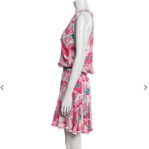 Poupette St Barth A-Line Dress, Pink Floral with detail trim, Size M